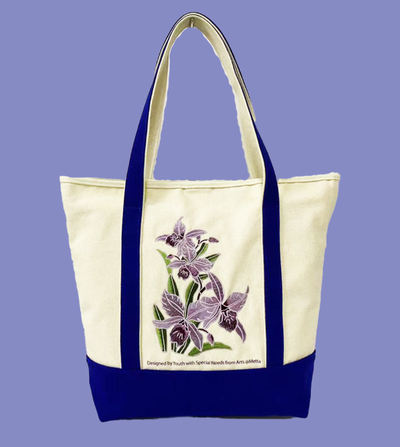 As part of the President's Challenge, we collaborated with the Metta@Art society. The orchid flower design, a digital drawing created by special children from the art center, inspired our tote bag design. 20% of the sales will be donated back to the society. Our core mission is to empower special children to achieve independence through our merchandise.